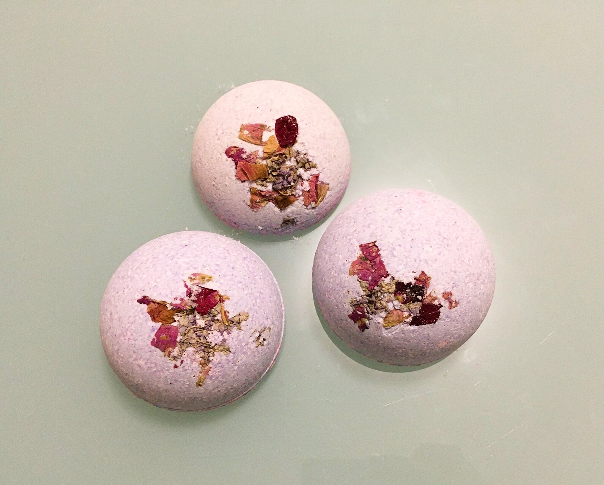 Zea mays starch, Citric acid, Sodium bircarbonate, acqua, Magnesium Sulfate (Epsom Salt), Olea europaea fruit oil, Beta Vulgaris Leaf Powder, Lavandula odorata leaf oil, Cymbopogon Martini Oil, Dried Rose Petals, beta vulgaris leaf powder (Barbabietola fresca essiccata per conferire il colore rosa).