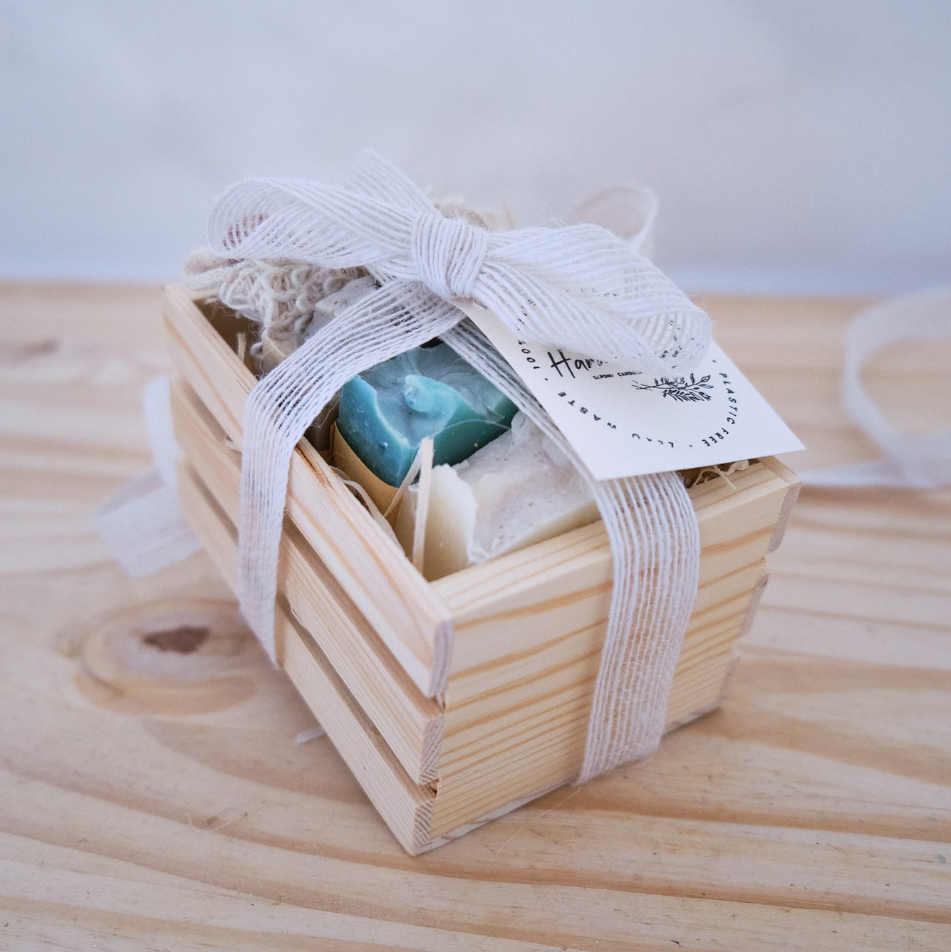Un elegante cofanetto in legno che racchiude i prodotti solidi essenziali per la cura del corpo. Una coccola naturale da regalare, perfetta per chi già li ama, per chi vuole farli scoprire o per chi desidera provarli per la prima volta.