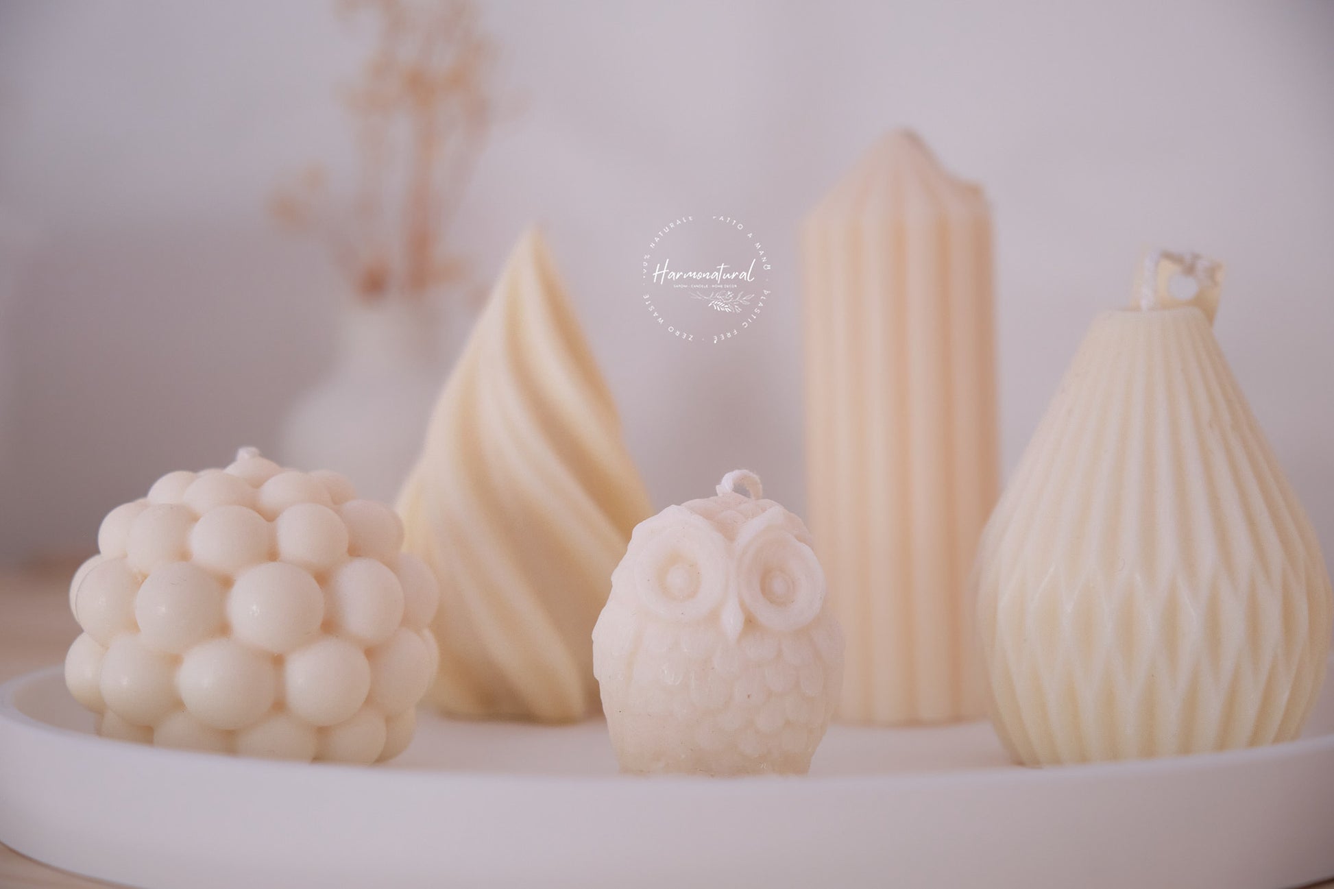 Le candele HARMONATURAL® sono realizzate esclusivamente con cera vegetale di soia di alta qualitá, stoppino in cotone e fragranze italiane certificate.