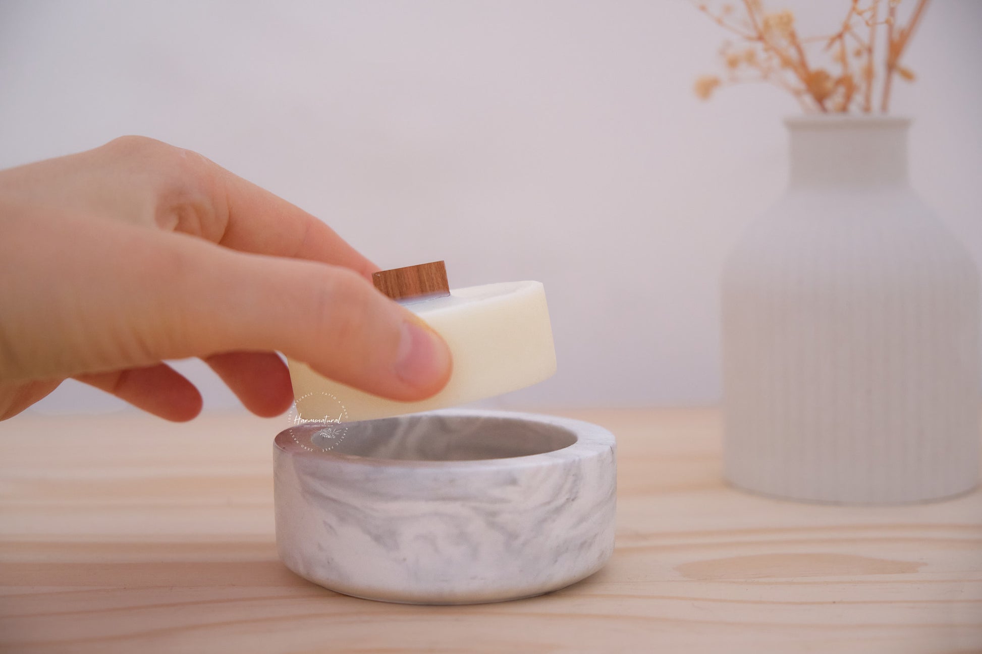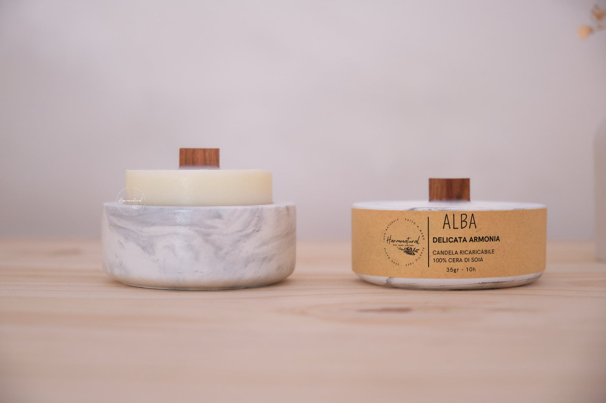 Le candele HARMONATURAL® sono realizzate esclusivamente con cera vegetale di soia di alta qualitá e fragranze italiane certificate.